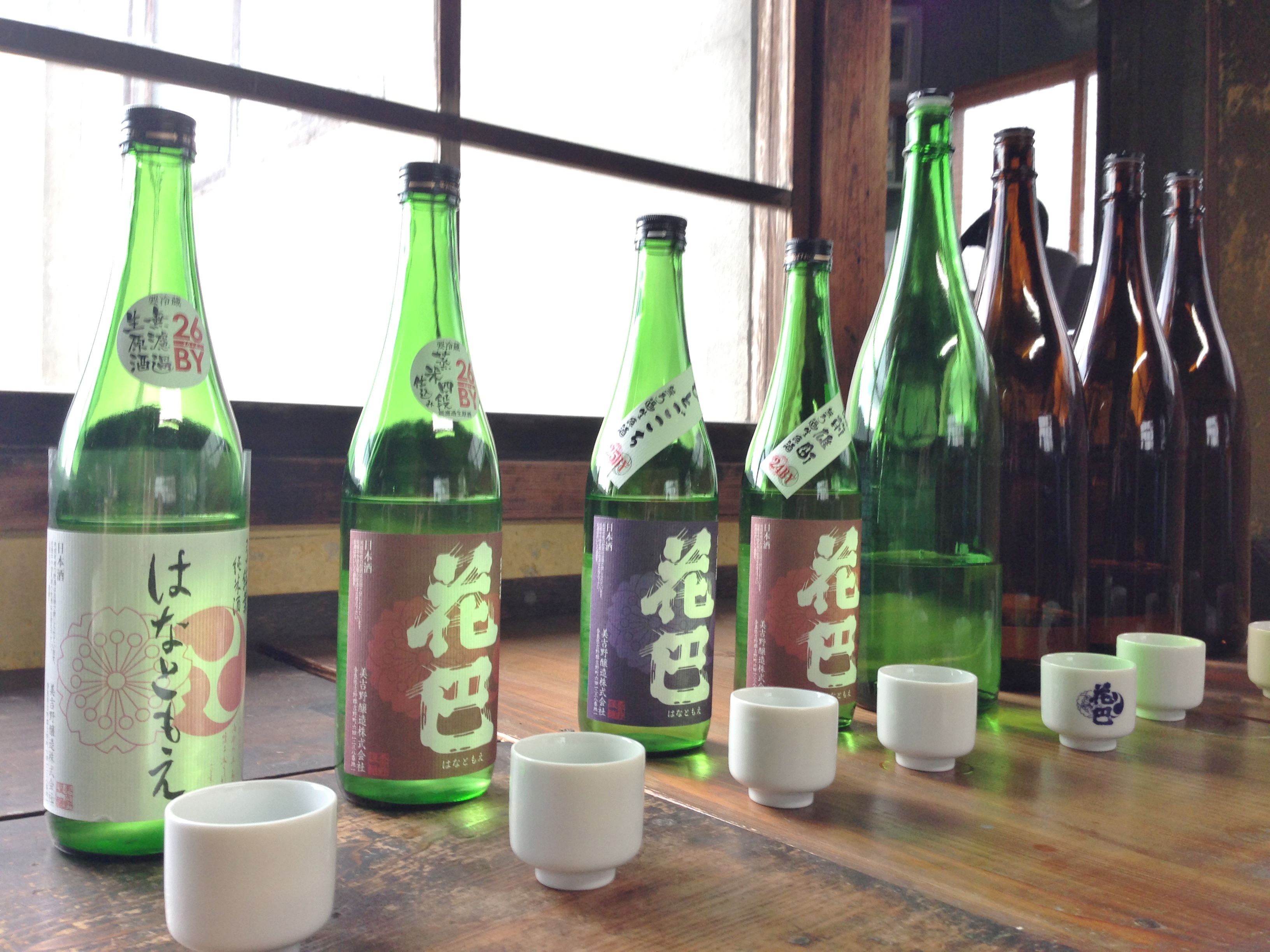 On top of these standard staples of the Hanatomoe line-up I was intrigued by some of the cellar door offerings available. Hashimoto-san is a keen experimenter and one of his pet projects is his 100 Year Cedar (hyakunen sugi) barrel production sake. Being surrounded by timber yards in the middle of the Yoshino cedar timber industry, using the local cedar barrels to ferment sake seemed the next logical step in demonstrating the terroir of the area. Most sake these days is produced in enamel coated tanks which offer a far more sanitary environment as opposed to wood which fungus and bacteria tend to linger in regardless of cleaning. Again, Hashimoto-san sees this as just another character trait to the Hanatomoe sake personality. The sake is also aged on site in the bottle so various vintages are available if purchased direct from the brewery. The 2011 was my pick of the bunch. A tangy aroma of mandarin rind leading to a tight, acidic, slightly sweet and lighter than expected body. Peppery hints of cedar influence are present but far from dominating.